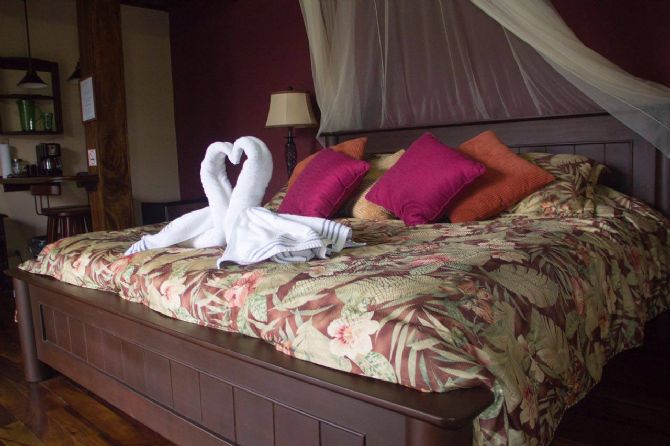 Estos alojamientos de estilo boutique ofrecen una cama King equipada con ropa de cama de primera calidad para que los huéspedes tengan un sueño reparador. Las magníficas chimeneas añaden un verdadero carácter a las habitaciones, y las terrazas privadas amuebladas ofrecen vistas excepcionales de la magnífica flora y fauna que hace que Costa Rica sea tan hermosa y famosa. En el interior, los visitantes tendrán acceso a un mini-bar, refrigerador y cafetera para que puedan comenzar sus días con una cerveza oscura y deliciosa costarricense y un refrigerio. El agua embotellada gratuita también está disponible en cada habitación.