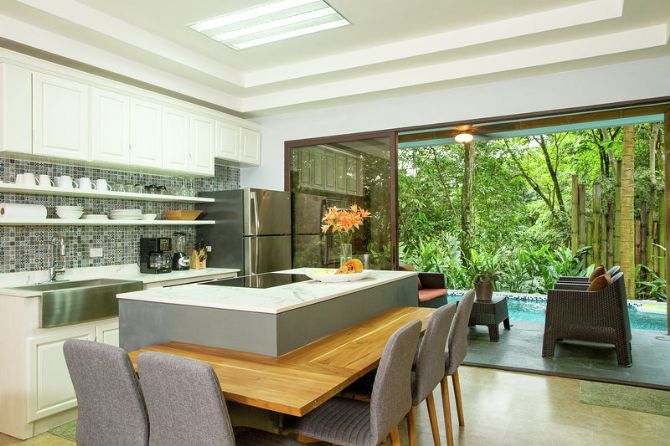Esta villa posee una espaciosa y totalmente equipada cocina, un área grande de sala con habitaciónes y espacios abiertos a una hermosa terraza donde se encuentra el área de piscina y unas refrescantes duchas exteriores. Camas de tamaño king y una cama individual forman parte de las habitaciones, así como un espacioso cuarto de baño.