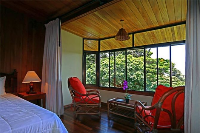 Este exclusivo hotel es pequeño, pero cada una de sus 26 espaciosas habitaciones para no fumadores ofrece una maravillosa vista de la naturaleza circundante. Puede disfrutar de las comodidades que esperaría de un gran complejo turístico, pero al mismo tiempo, se le ofrece una conexión íntima y exclusiva con el bosque nuboso. Durante su estancia, puede cenar en el restaurante del hotel, que ofrece un desayuno buffet gratuito todos los días y platos internacionales para el almuerzo y la cena. WI-FI está disponible en sus habitaciones y en las áreas comunes, para que pueda mantenerse conectado con los que están en su hogar, incluso cuando se sienta fuera de la red.