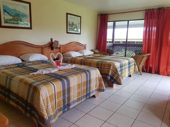 Habitaciones Las 24 modernas habitaciones están ubicadas en un edificio de dos pisos. Las habitaciones son agradables, luminosas y espaciosas y ofrecen hermosas vistas. Cada habitación tiene dos camas queen, y se pueden solicitar cunas y camas adicionales. Los baños completos privados también son amplios, con bañeras y jacuzzi. Cada habitación tiene un patio o balcón privado desde donde disfrutar de las impresionantes vistas.